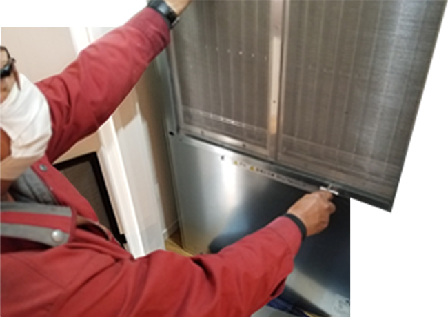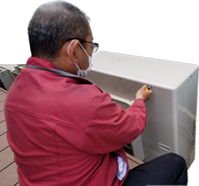 冷凍サイクルの確認や室外機本体の状態を点検します。